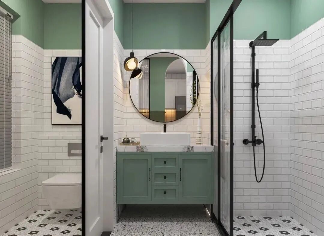 马桶、洗手台、花洒、浴室柜等能上墙都上墙,不然就容易成霉菌的战场。