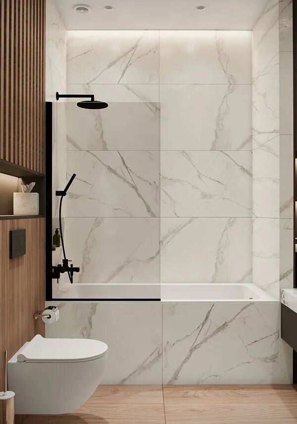 与独立式浴缸相比,嵌入式浴缸与墙体无缝连接,打理更轻松。