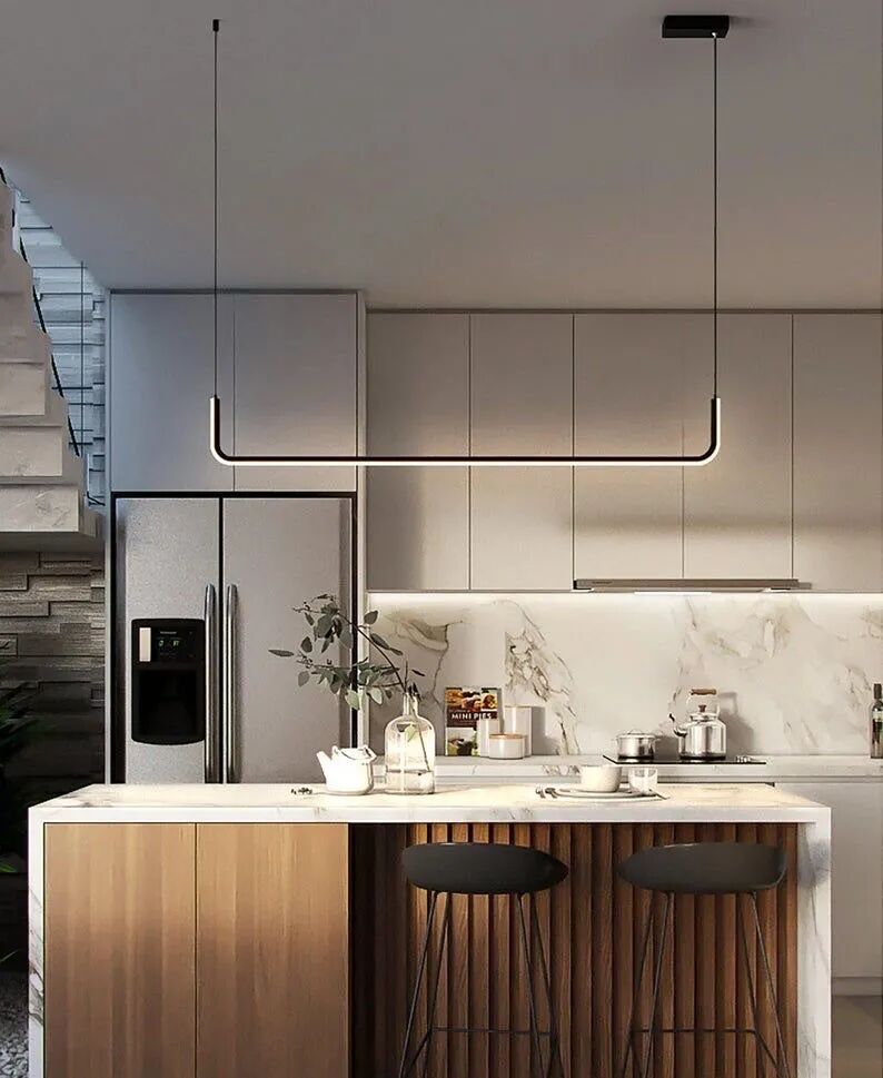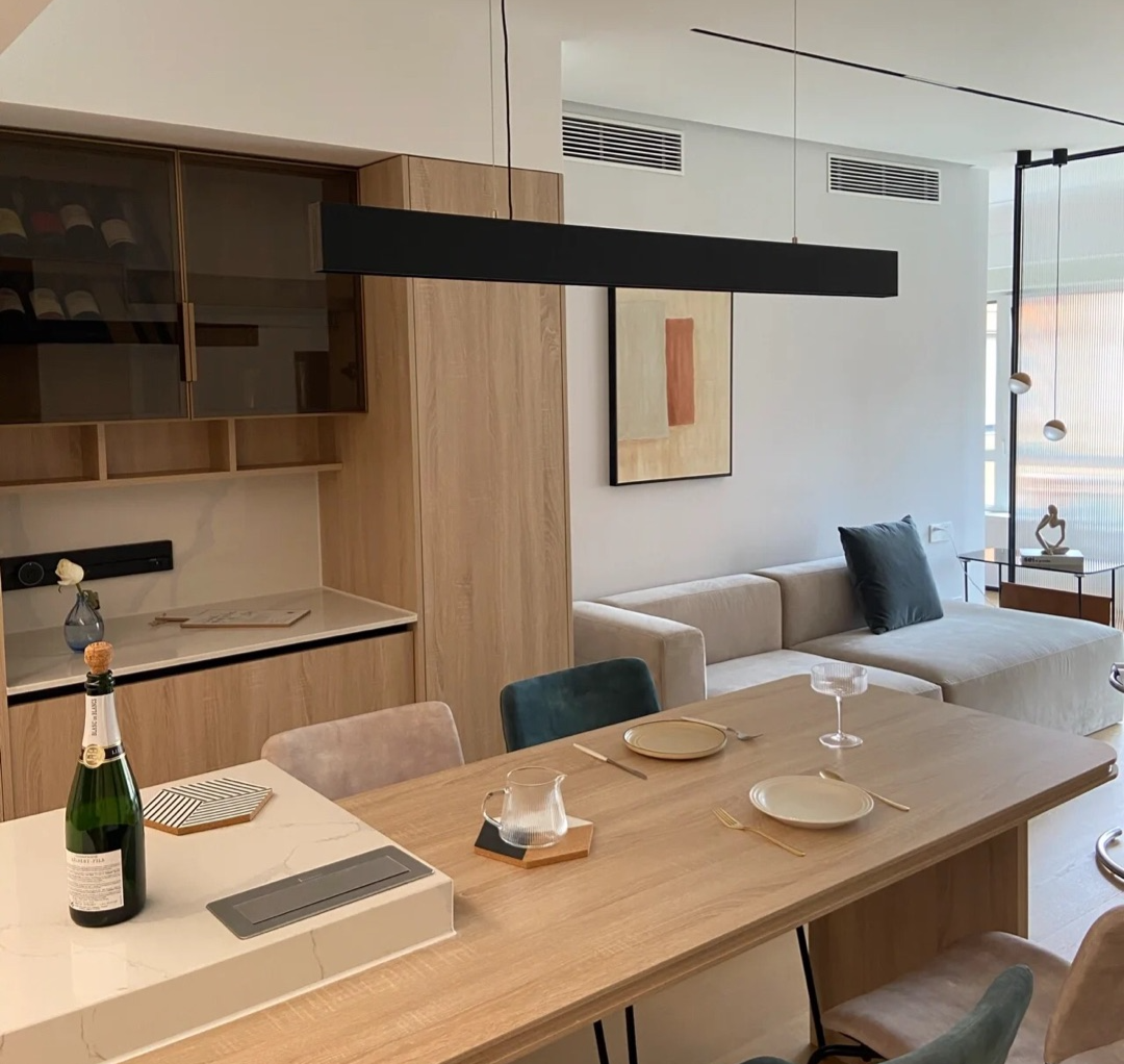 这种也是备受追捧种草的网红岛台,在功能上也更加多元。如果空间足够,最好做到加长餐桌,可以更好更舒适的实现用食、社交、学习,玩乐、品茗等功能。