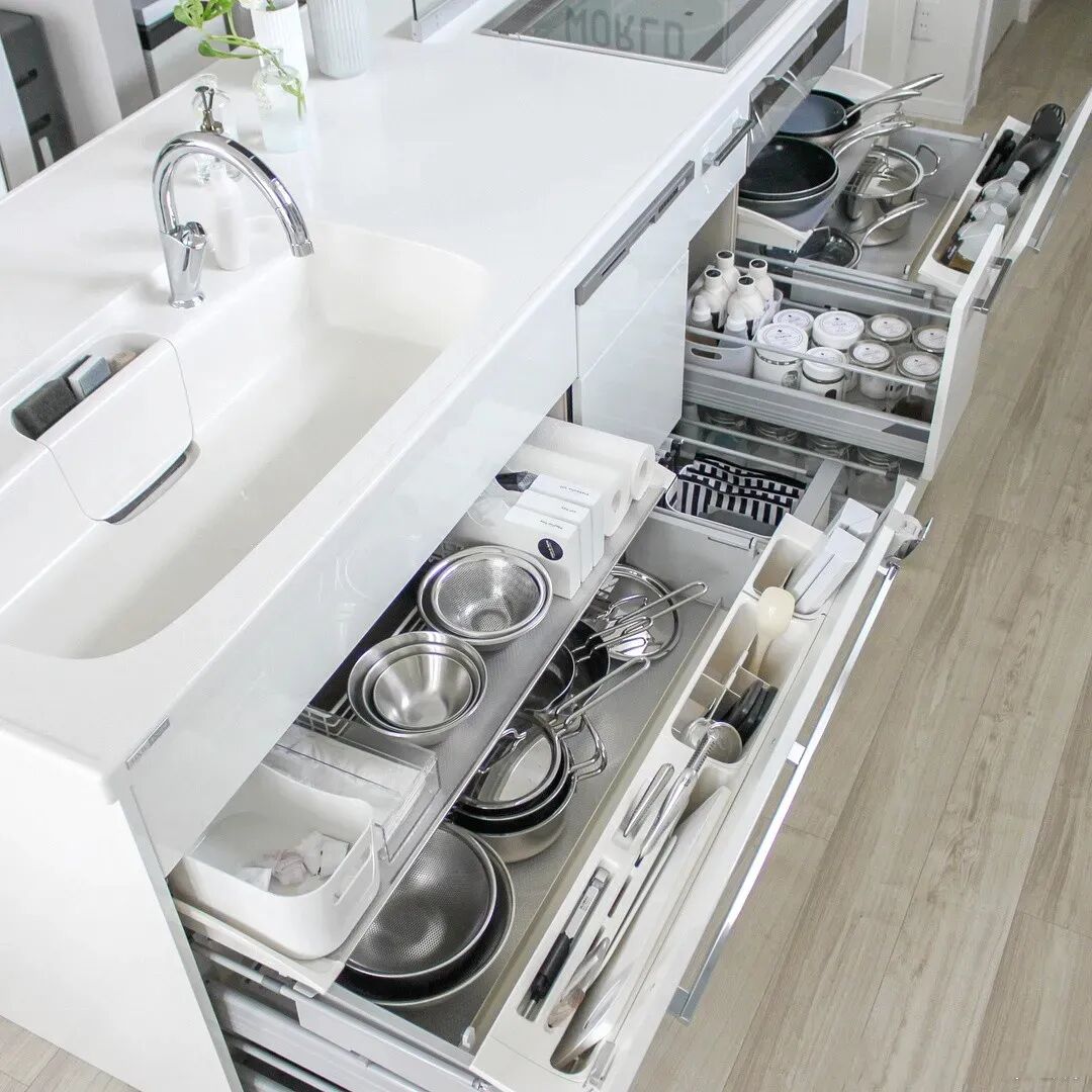 厨具多用抽屉+收纳盒来收纳,整洁有序、方便查找,也更省空间。