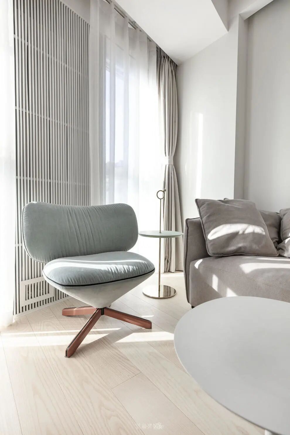 设计师打掉室内所有的隔墙,对空间进行新的定义划分。整体空间要实现柔和的基调,全屋使用大面积白色结合中性灯光及木材的元素搭配。空间造型力求简洁,使用简单的材料来营造柔和的氛围。旨在更少的东西,更少的注意力和更多的沉默,便能让我们过上简单而平静的生活。