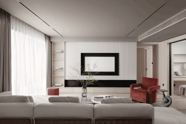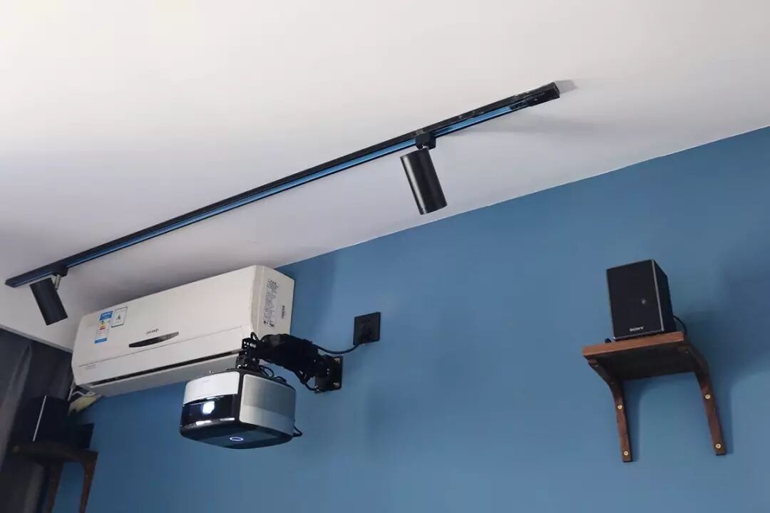 ④电视或投影仪1个插座,投影可吊装在墙上,或搭配电动吊装支架将其藏在天花里,遥控升降,不占地更美观。