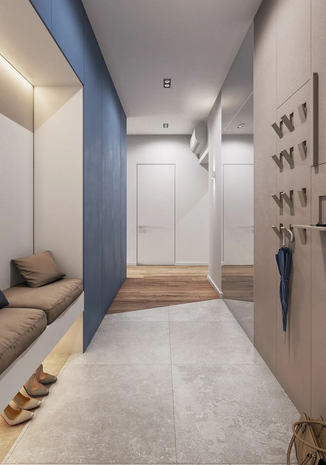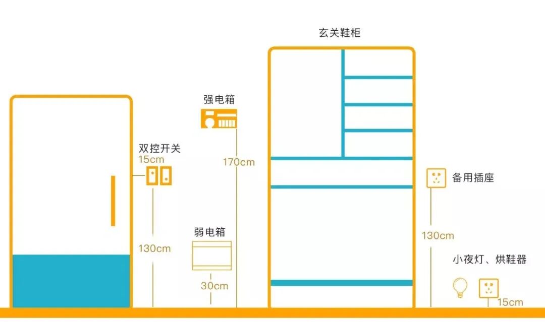 ③玄关柜旁边或下方留空位1个插座,方便烘干鞋子或给扫地机器人、吸尘器充电。
