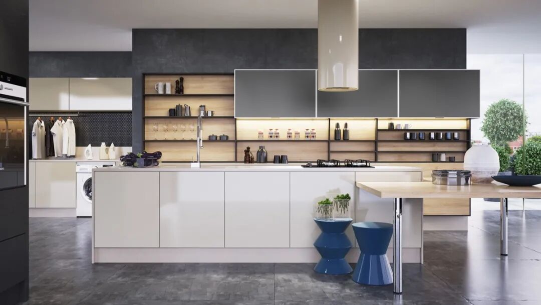 ④电饭煲、空气炸锅、微波炉、破壁机、垃圾处理器、直饮水机等小厨电大家需求不同,可以多装3-5个插座,或安装一体式轨道插座,使用时无需移动电器更方便。墙面插座常规高度是离橱柜台面300mm。