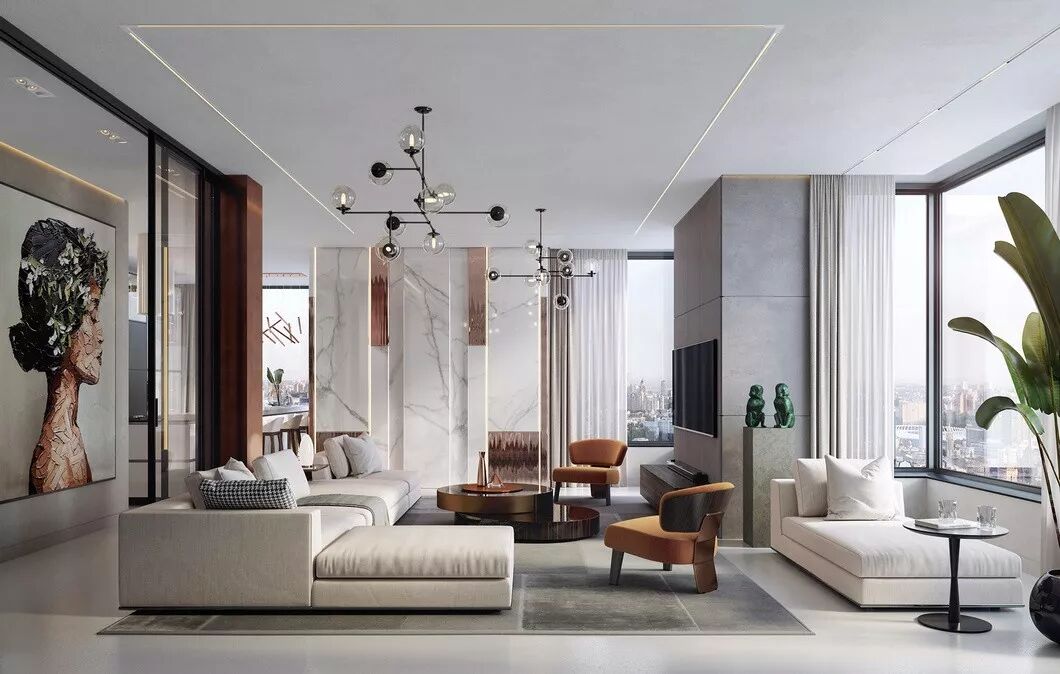 本案的女主人是一位公司总裁,出身于艺术世家。对于房子的设计见解独特。整体空间要求摒弃浮华的外在,注重内在的简约及精神的淡泊。