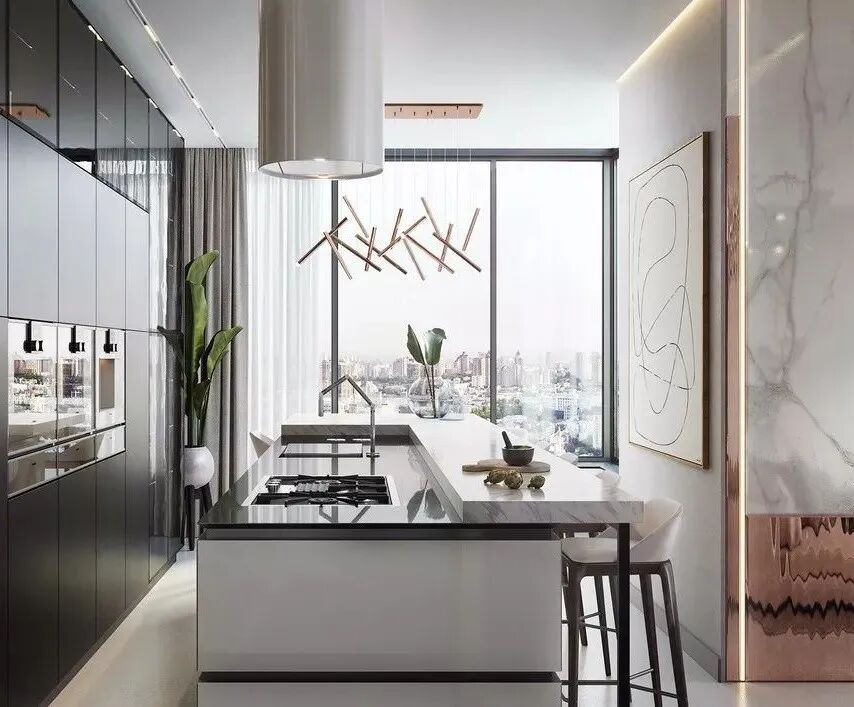 坐拥高层的绝佳位置,登高远眺尽得一线美景。作为一种宏大的意境,完美衬托了内部空间的大气和开阔。全开敞式的设计形式,在日出日落间川流不息。