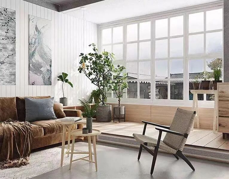 很多人选择将客厅与阳台打通(非承重墙)来提高使用面积,但是客厅与阳台的连接处却常常被忽视,除了放空调、暖气、冰箱、落地灯、绿植外,压根不知怎么用。