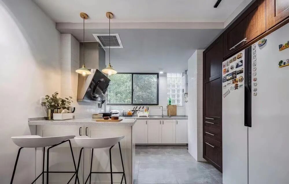 岛台:有的人选择将厨房放在阳台,所以吧台还能兼做岛台,扩大操作空间。