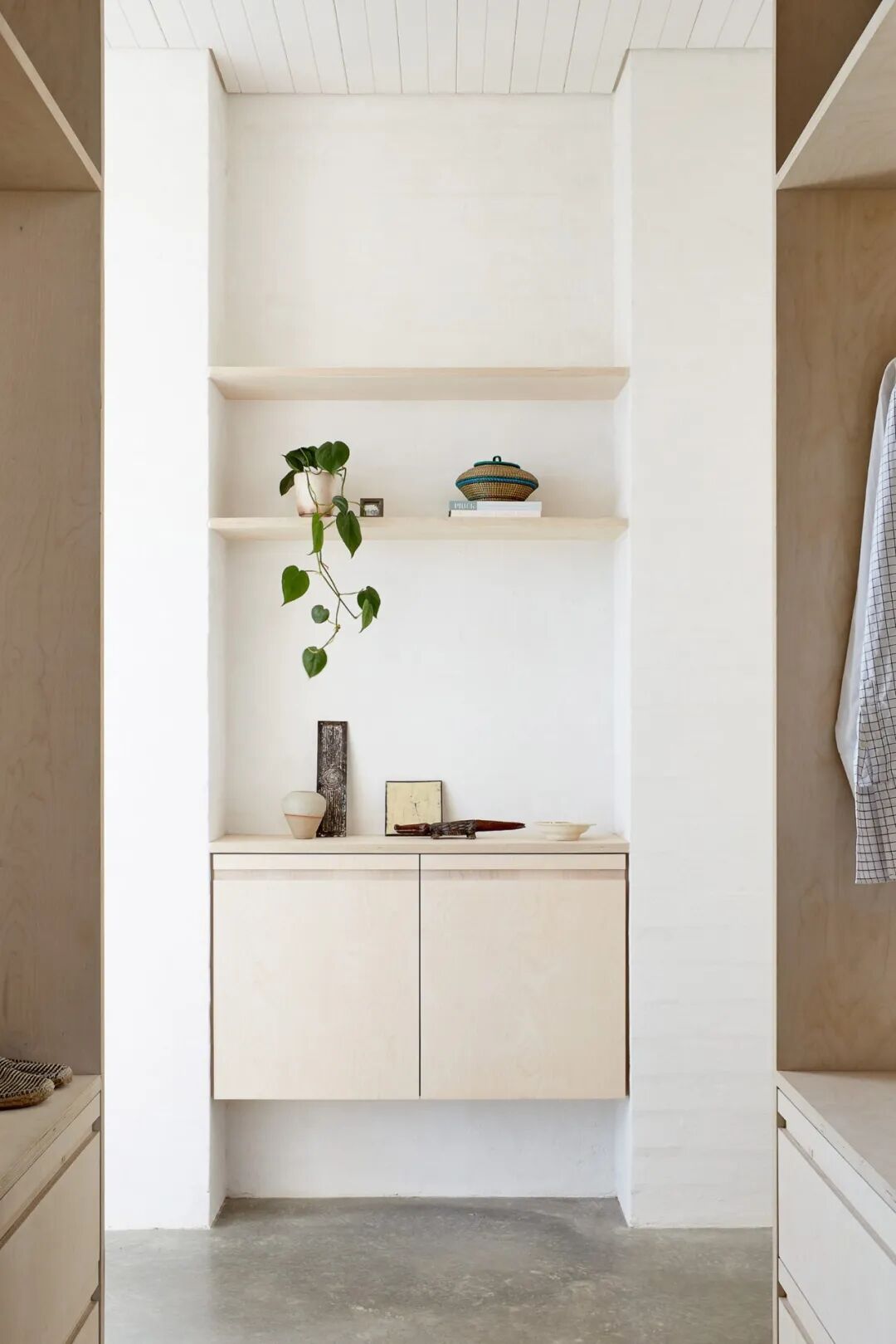 衣帽间采用全实木隔板,墙面摆上几件优雅的摆件,精致优雅的氛围感立马就有了。