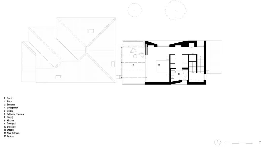 当地的建筑工作室David Barr Architects将原本的平层结构扩建成了二层,作为夫妇二人的主卧室。当孩子们来拜访他们时,两代人可以拥有各自的独立空间,互不打扰。
