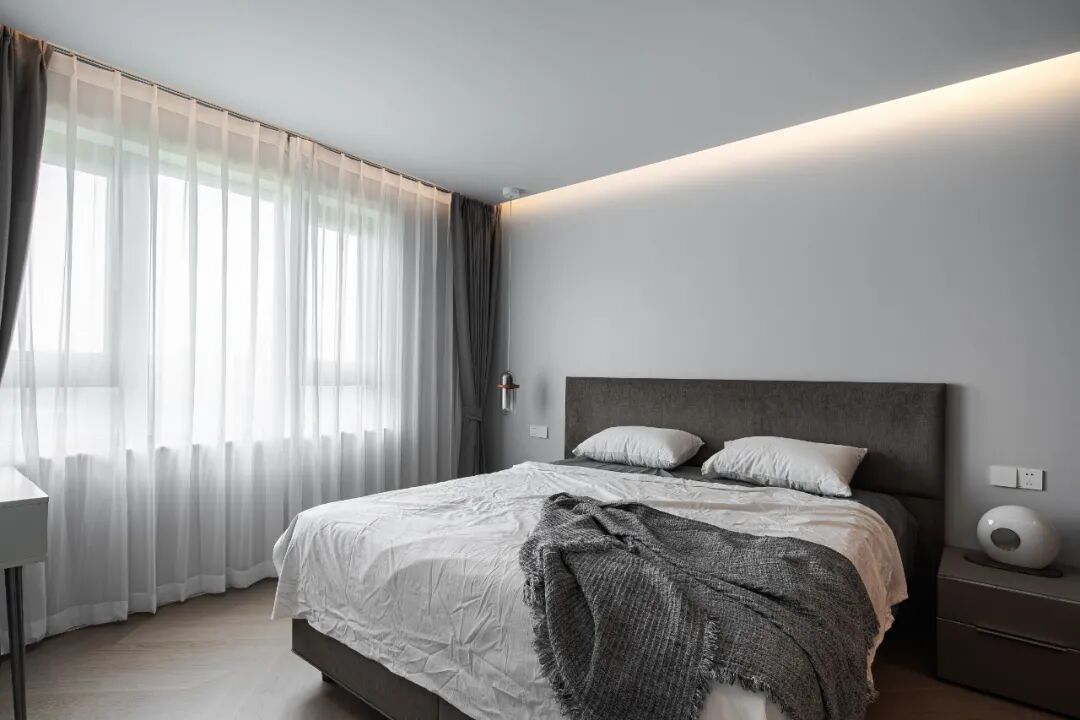 搭配舒适的软包床头和造型别致的床头灯,将空间的品质再次提升。