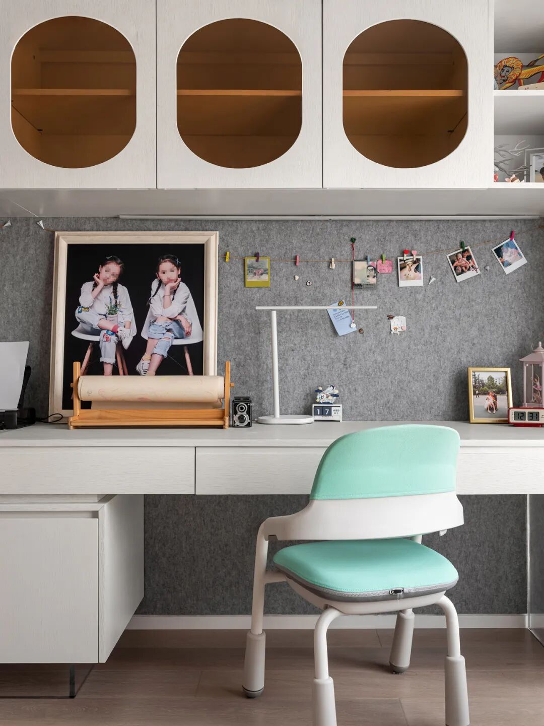 规划充足的树洞柜体扩大储物空间,书柜与书桌空白的区域则记录着少女们成长的轨迹。