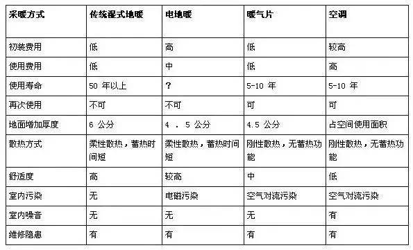 现在的供暖方式分为:水地暖、电地暖、暖气片。平心而论,每一种供暖方式都有自己的优缺点。