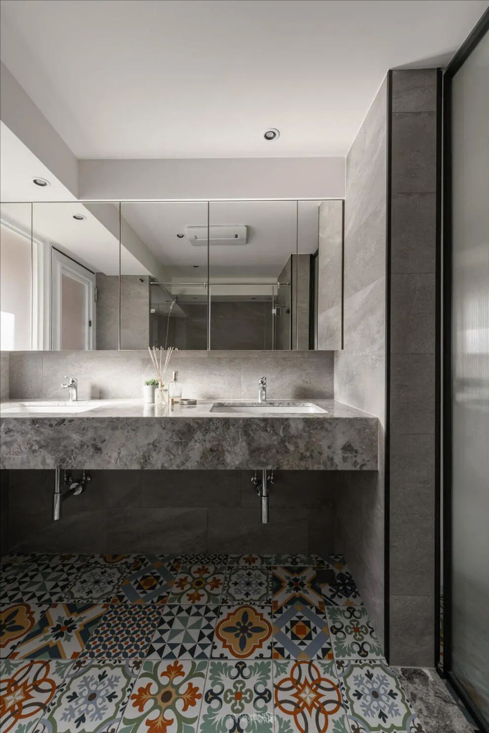 卫生间做了干湿分离的设计,缓解原本小卫生间的不足,双人洗手台、易清洁材质的使用,都让生活更易于打理,改变了原本破旧的压抑。