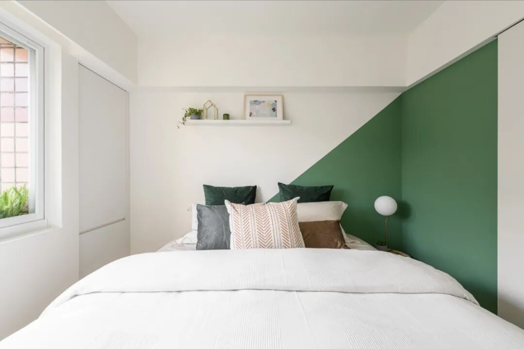 主卧并没有做太大的改动,在原有空间的基础上,以几何的造型的方式延伸空间感,规避了空间的局促;结合墙体结构做了隐藏式收纳设计,无疑,让小空间发挥了极致的功能。