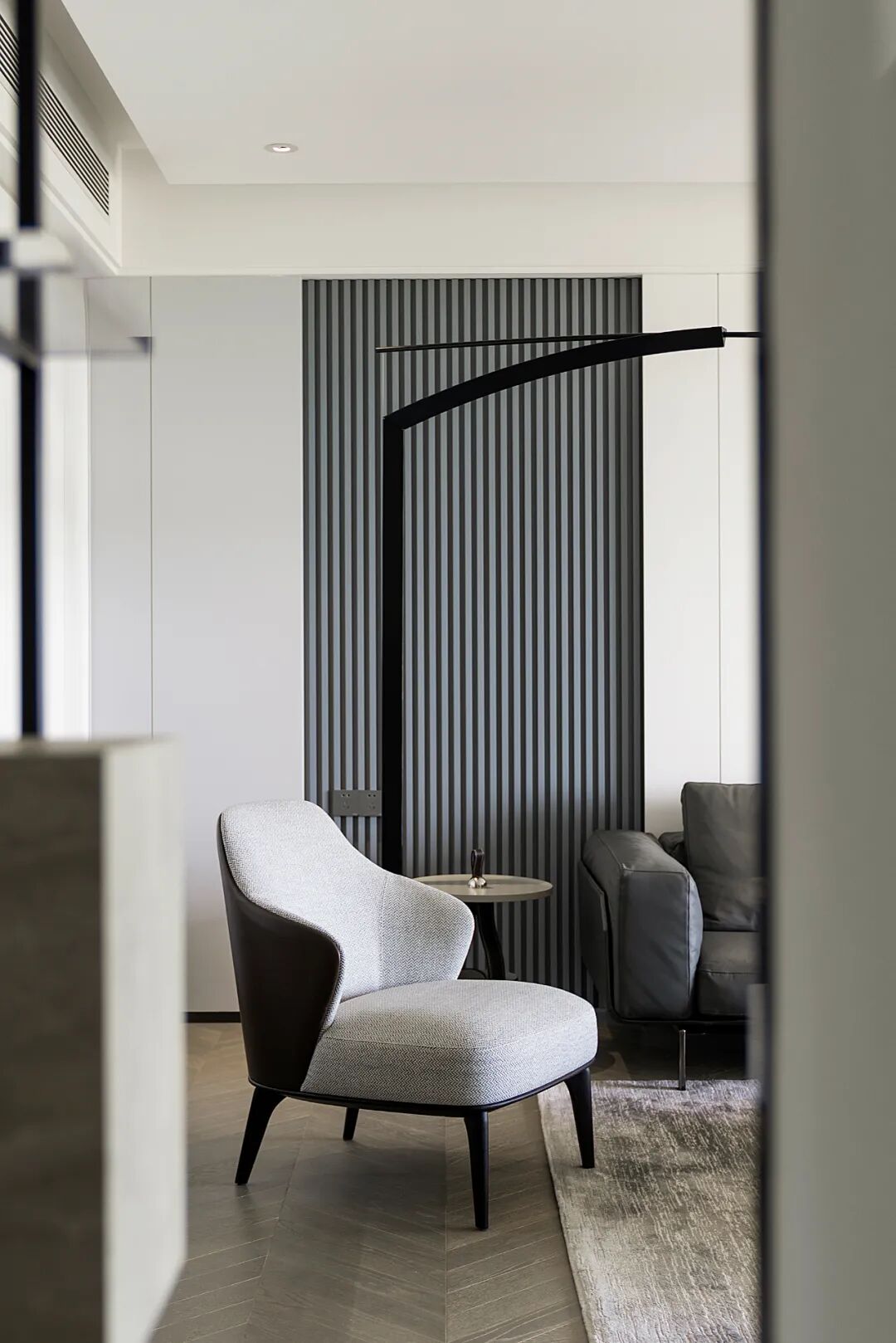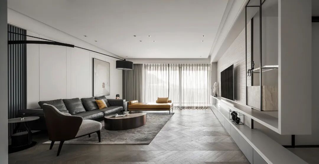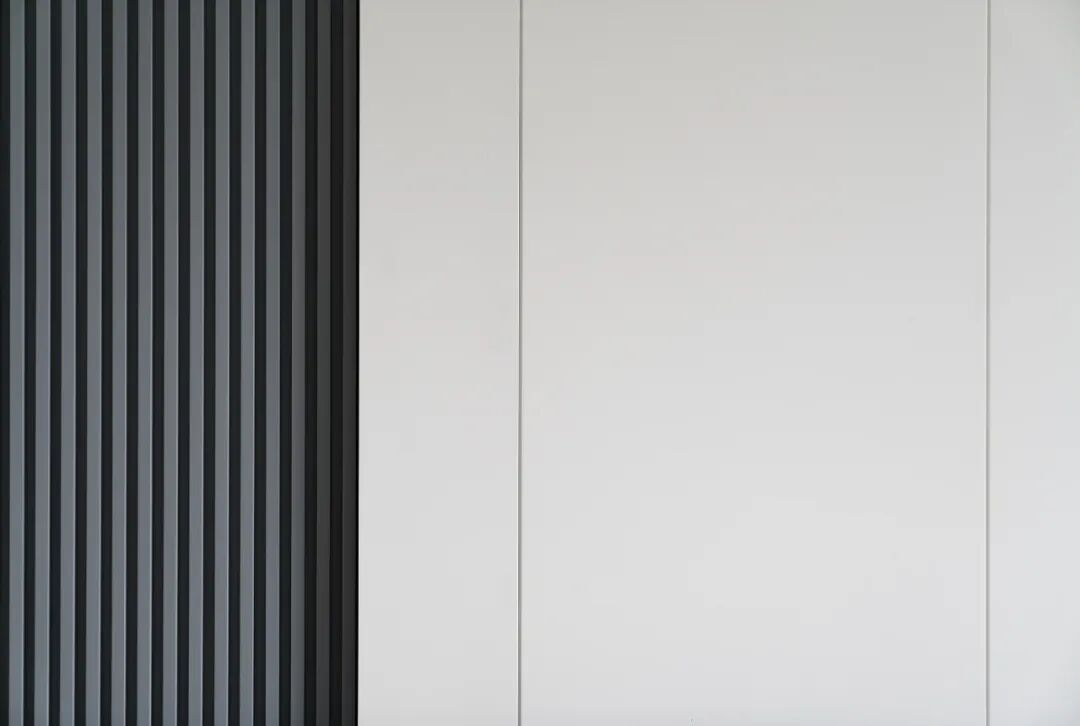 摈弃繁琐的设计元素,让空间大面积的留白,仅在背景墙区域排线成面丰富装饰细节,同时将线性收口融入面中,让界面转折处干脆利落、连贯统一,更显极简大气空间感。