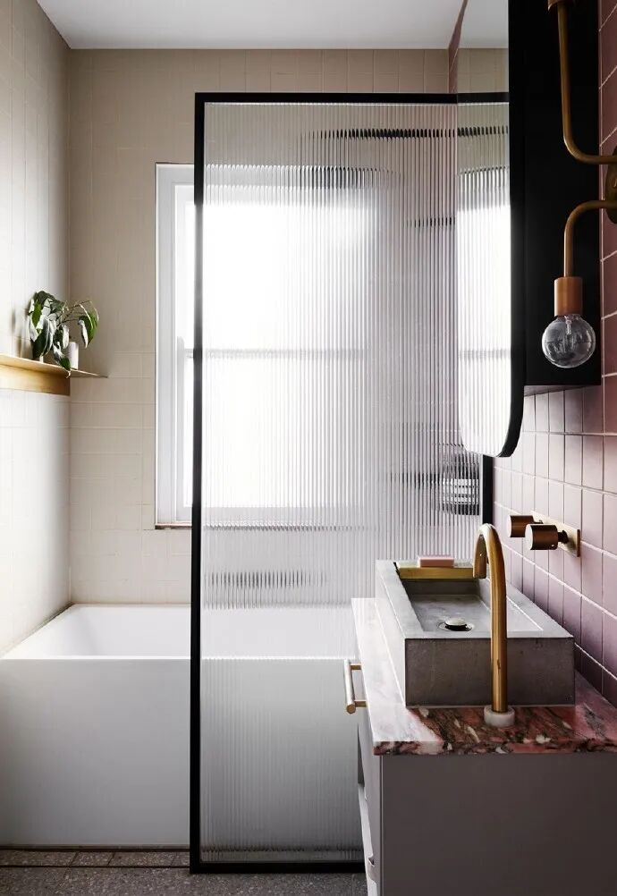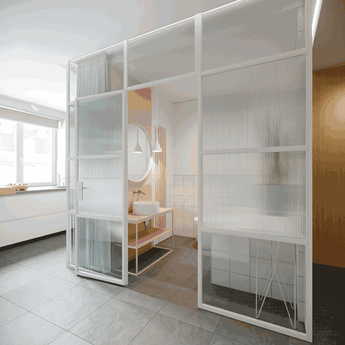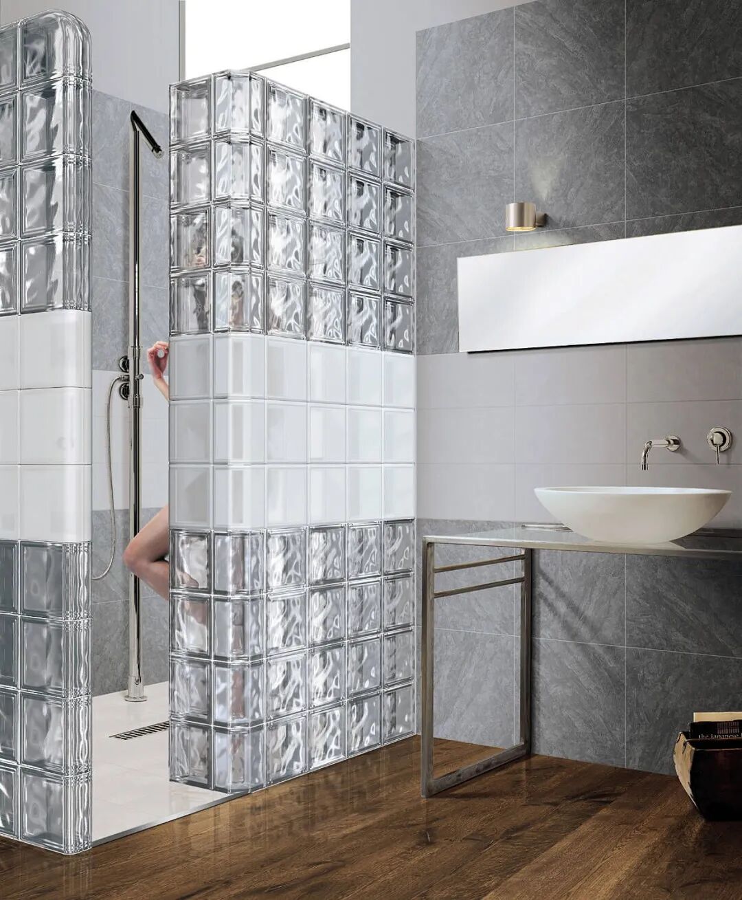 用它代替墙体做成隔断或窗户,能够很好地改善卫生间的采光,提高视野开阔度。
