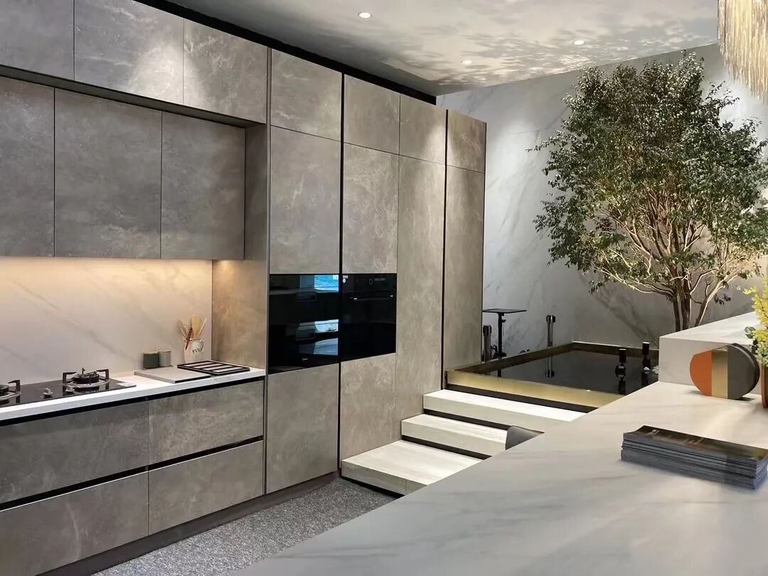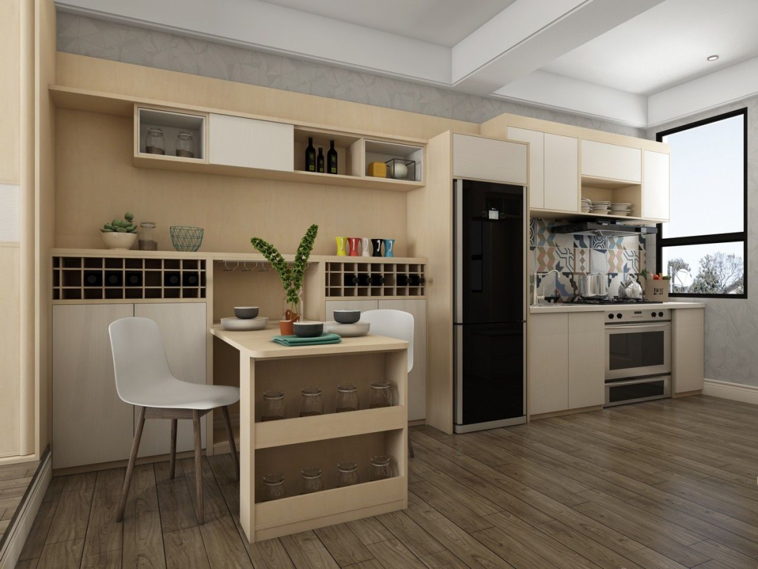 由于冰箱要防止受热受潮,所以需要与水槽和燃气灶保持一定距离。需要提前确定水槽的尺寸、燃气灶的尺寸、水箱与燃气灶之间的操作台长度、冰箱的宽度大部分在600㎜左右,根据自己实际要选择的尺寸和美观估算,得出橱柜的总长度。