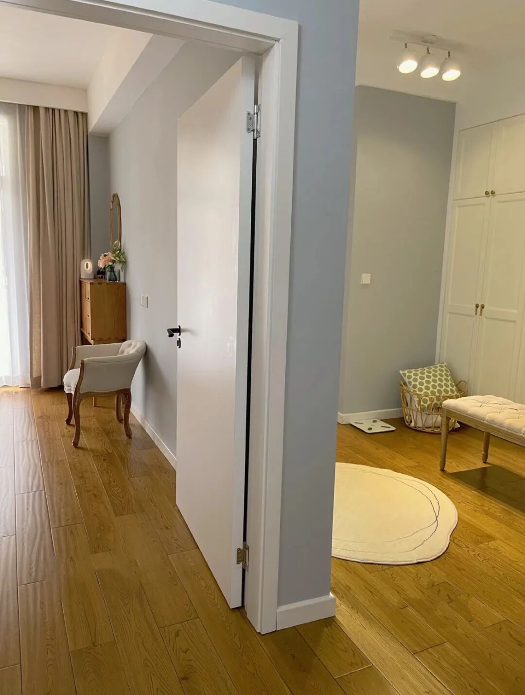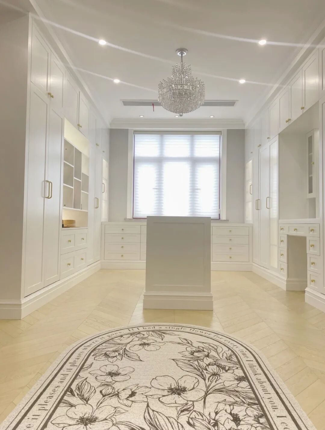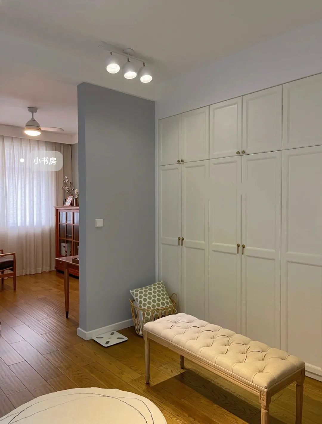 这个衣帽间估计不少人都要惊呼了,白色的设计整体更加整洁清爽。浅黄色的地板和金属的衣柜把手搭配相得益彰。打开百叶窗还可以通过采光无敌好的大窗户,将外面的景色净收眼底。