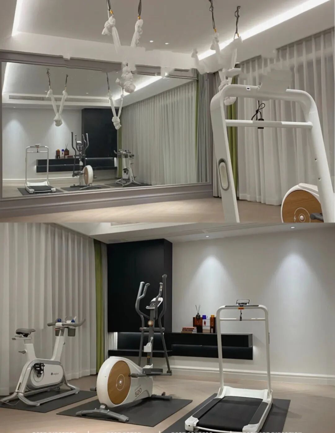家里还设计了健身房,闲暇之余足不出户,也可以锻炼身体,感受身体放松,大汗淋漓的快感。