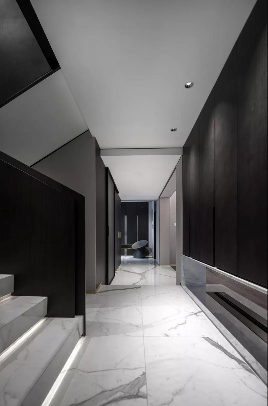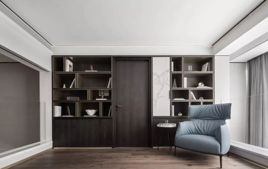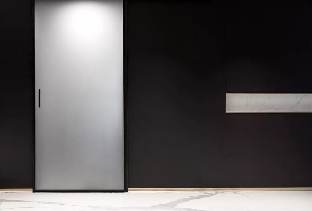 不同的人对颜色有不同的感受,在五彩斑斓的色彩世界,黑白灰对空间的呈现更为纯粹, 结构主义的小小运用,给灯光的指引做出巧妙的安排。每一件家具,都只为这个空间而生,倾斜出完美的回应,简洁的玻璃门,是墙的另一种陪伴,还有那扇门后的秘密。