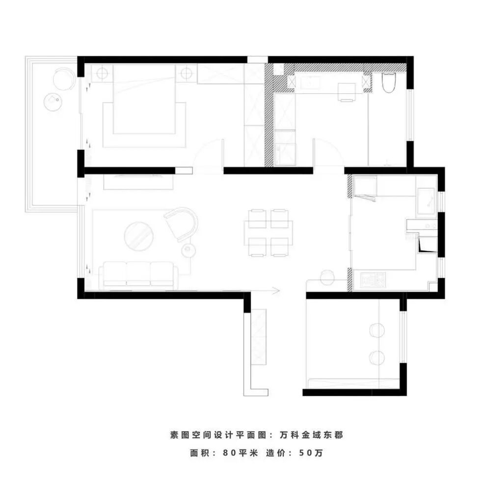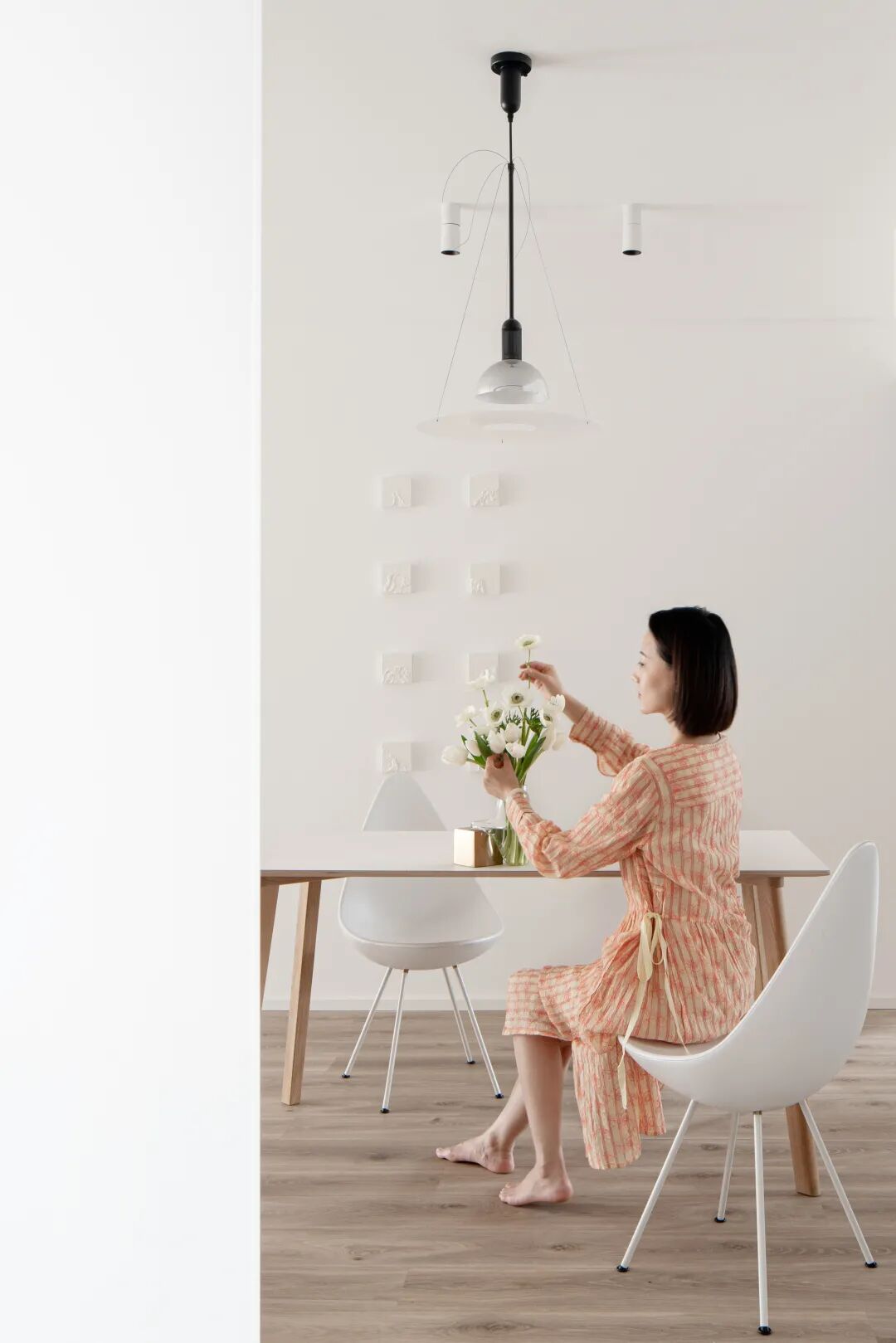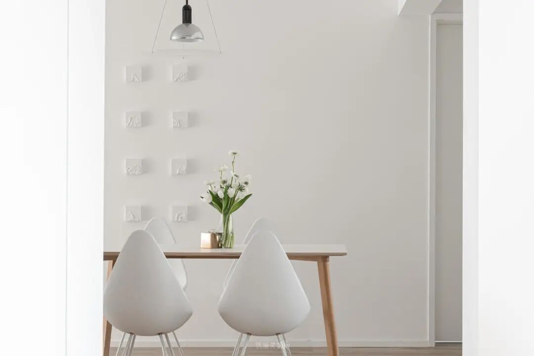 餐厅和客厅直接不做隔断,因为大部分的采光点都位于客厅,这样设计之后,光线能够完美的传导到餐厅处,更加明亮。