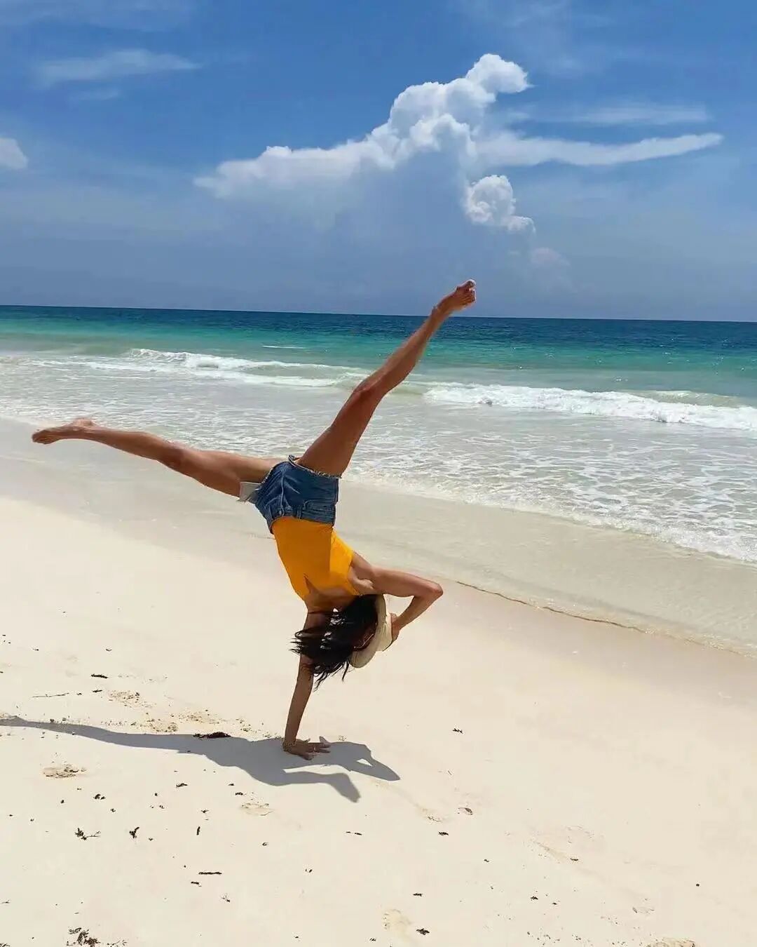 有海浪、有沙滩!健康小麦色皮肤,绽放着最自然的笑容!看这身手就知道体操的底子妥妥的还在。她依旧有着独属于那个年龄特有的魅力,生活开不开心、幸不幸福只有自己知道,毕竟笑容,没有办法轻易骗人!