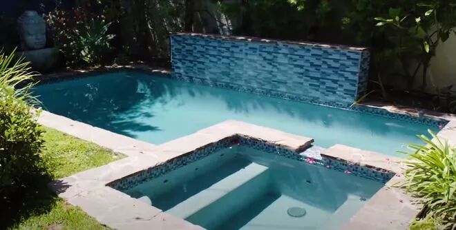 后院有一个小泳池,蔚蓝的池水、灿烂的阳光、清新的空气构成了一个精致的休闲区。