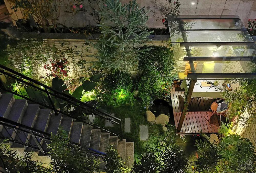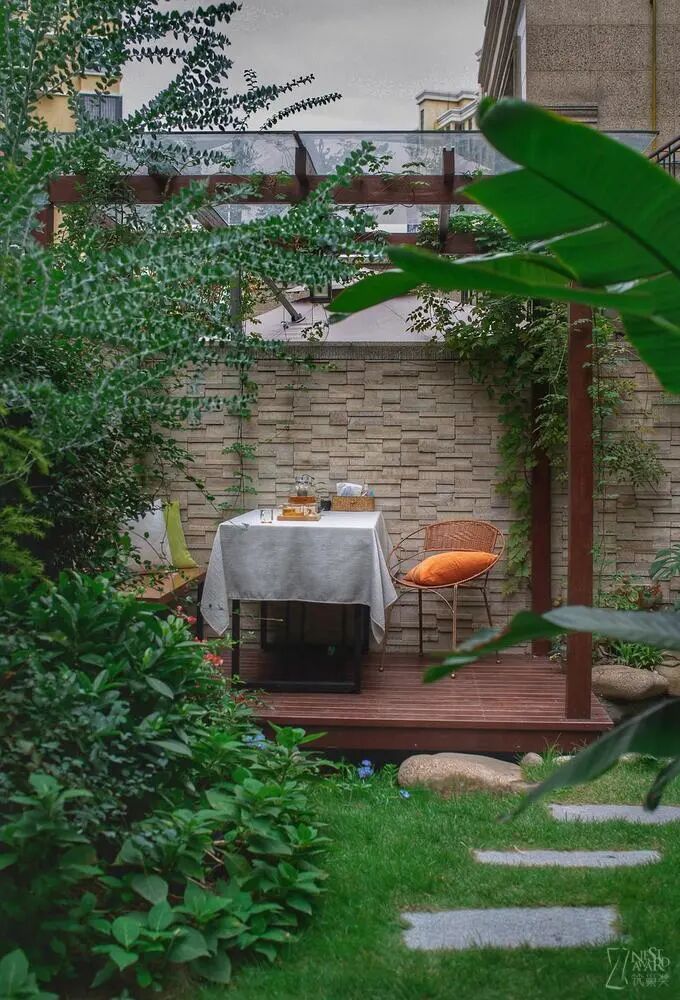 绿色的花园与木质结合,营造出自然生动的感觉,仿佛回归到田园生活中。