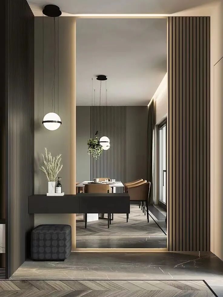 ③还有一种方法,就是将柜子变为墙,阻隔区分空间:在摆放柜子的位置时,我们可以将柜子放置在动线的转角处,旁边不只是与墙连接,还与其他空间的入口相连,如卧室、浴室、储藏室等,从而将柜子发展成一面墙,化零为整。