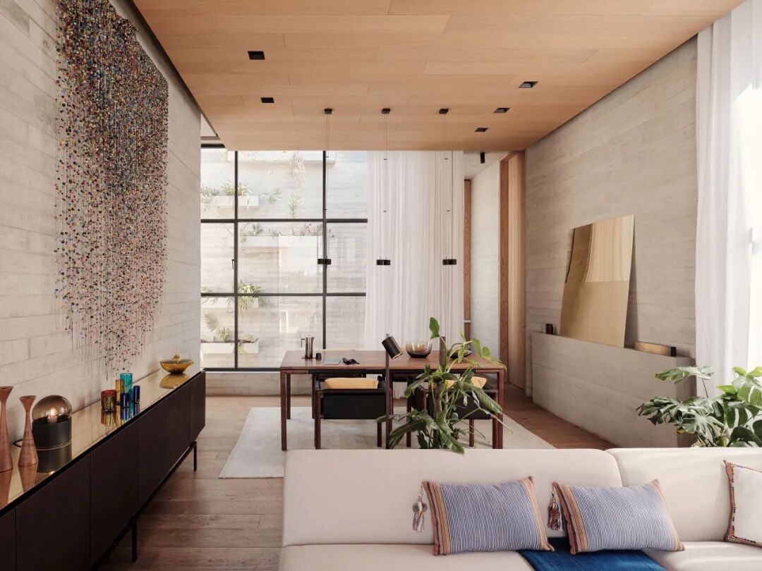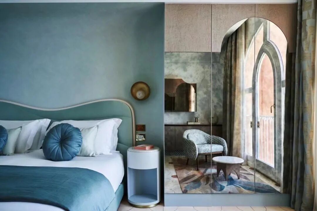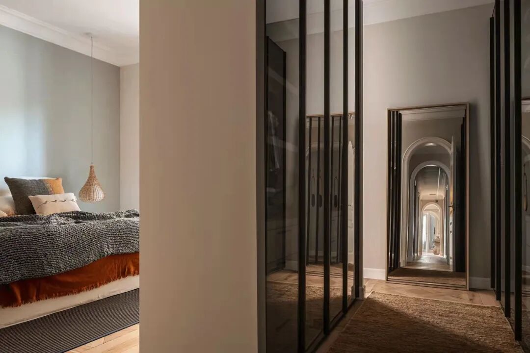 现在的柜面不只局限于一种材质,带有趣味性的镜面拉门绝对能扩大空间,让原本沉稳和呆板的空间更灵动和通透。