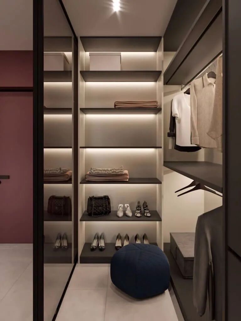 没有照明的衣帽间就像没有生机的杂货铺。尤其是在空间不是很大的衣帽间中,照明起着尤为重要的作用。好的照明可以让衣帽间看起来更开阔更舒服。