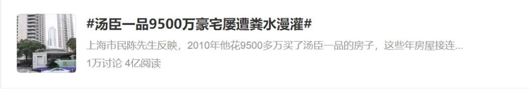 上海汤臣一品,中国豪宅代表,是无数人奋斗的终极目标,据说刘亦菲、郭敬明、黄晓明、小S、张柏芝等,以及球星姚明都曾住过这个小区。与邓伦偷逃税热搜同一天,汤臣一品也上热搜了,一个很有味道的标题,点进去一看,真是没想到有钱人家里也会出现这种反水、喷粪的场景......