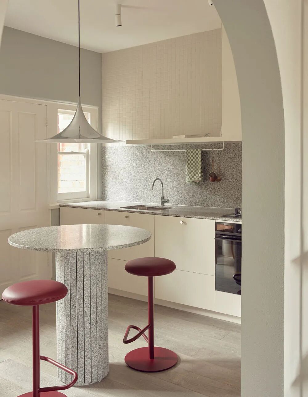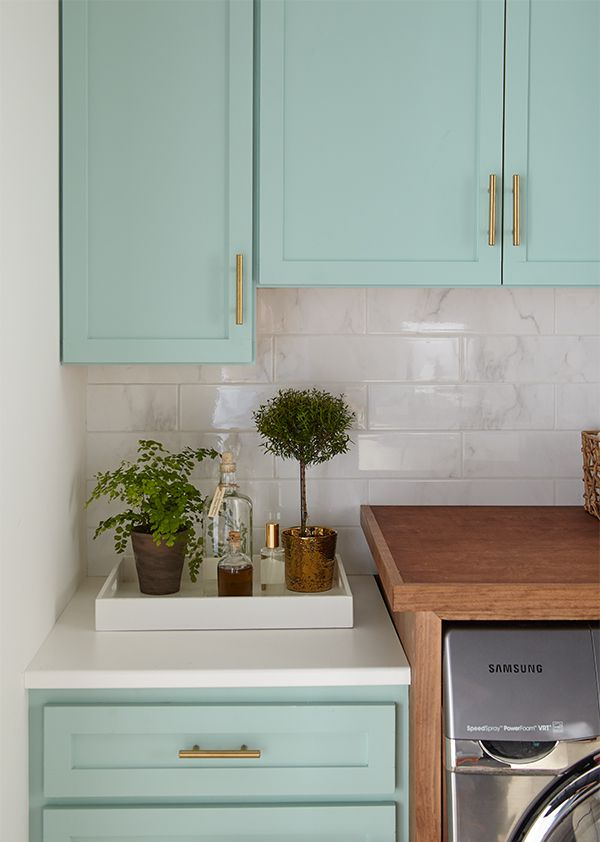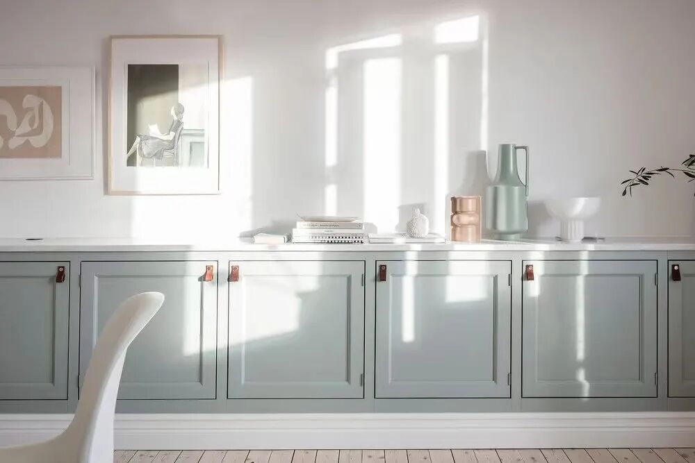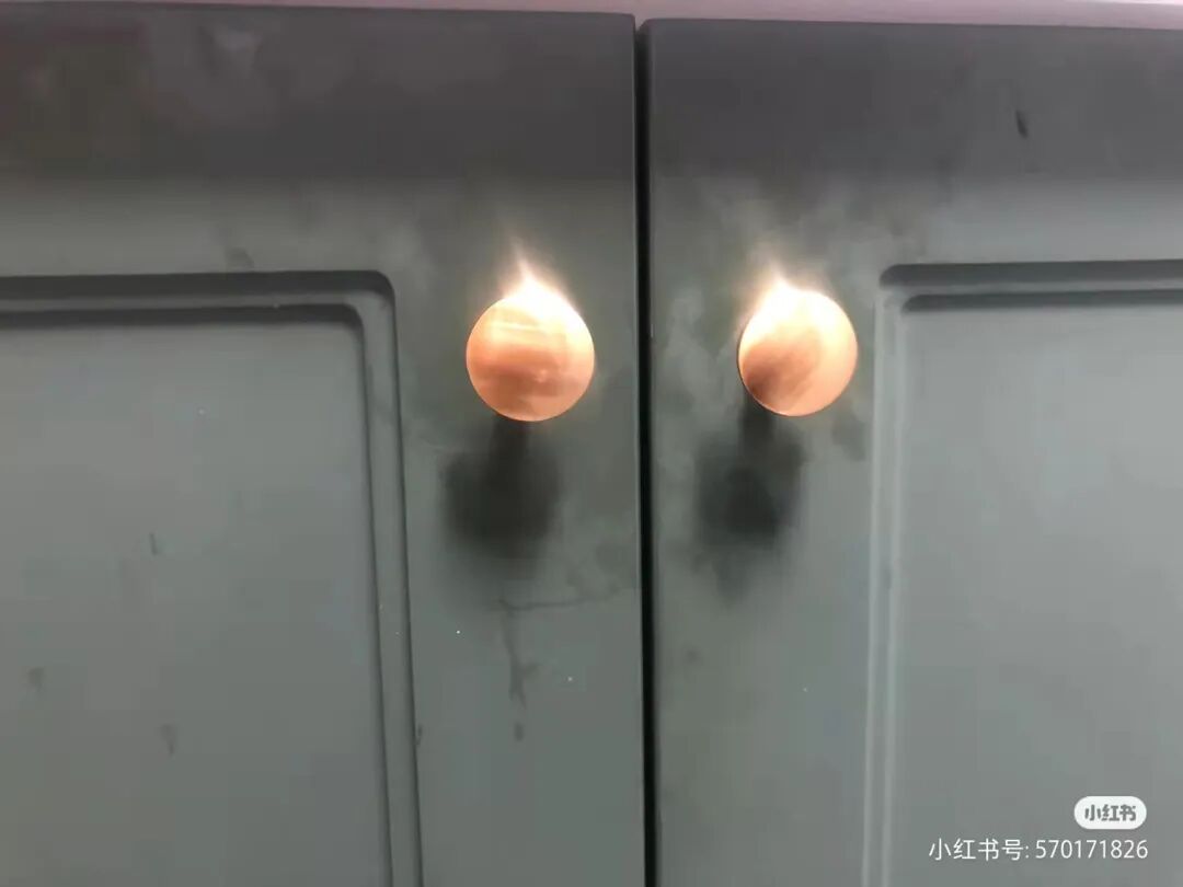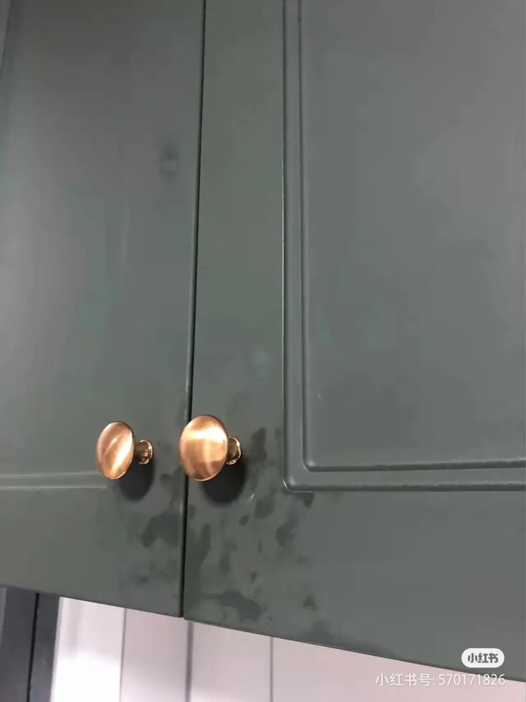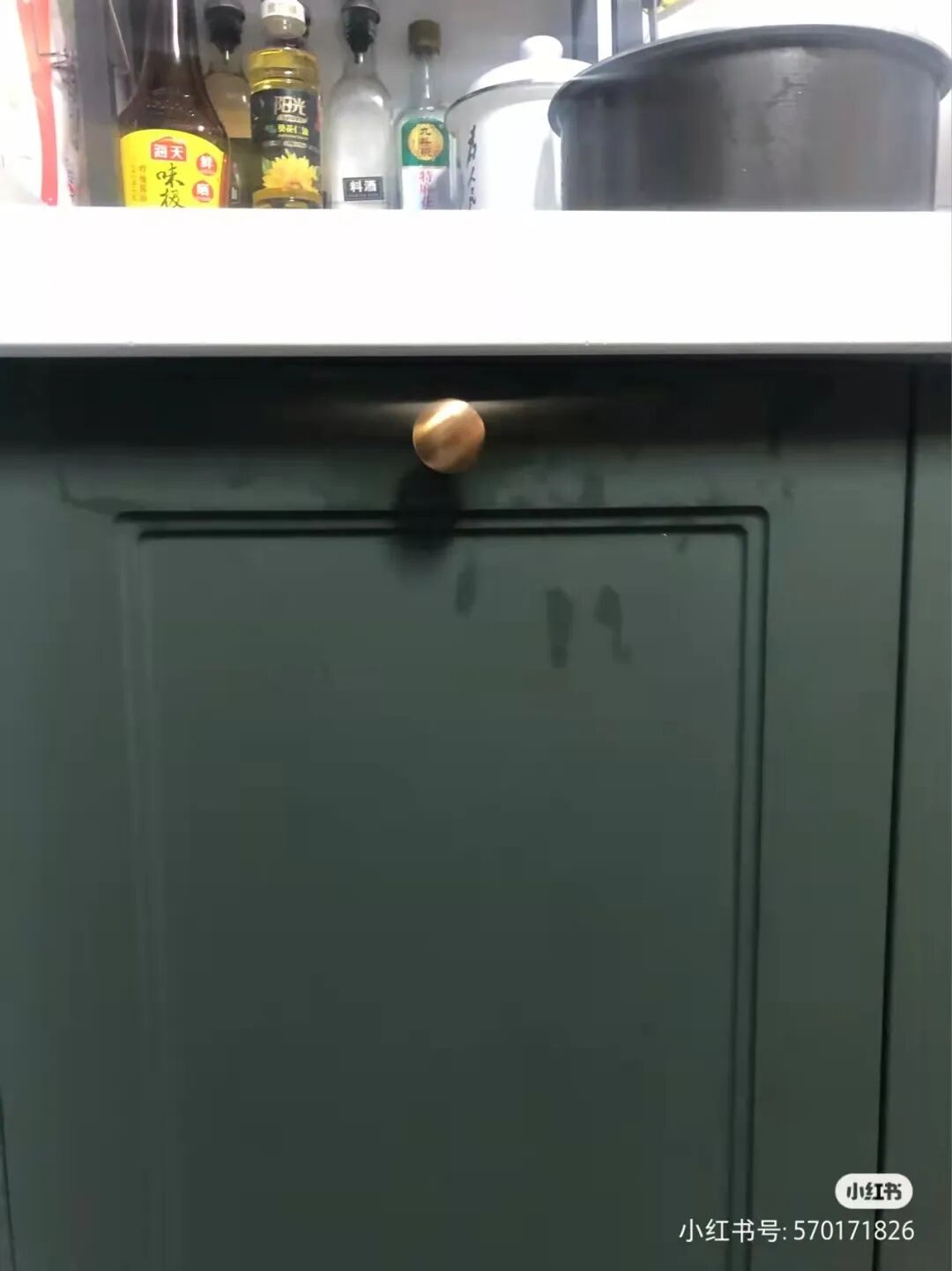 @蒋小花:最开始是喜欢这个饱和度很高的复古绿,最后发现自己踩了一个无比大的坑。肤感膜太显脏了,厨房这种重油污地真的不要选它,老老实实做光面柜门,它也很美。