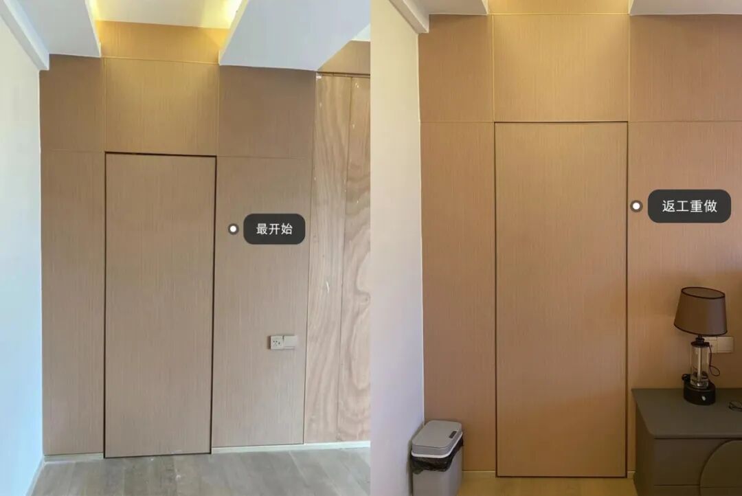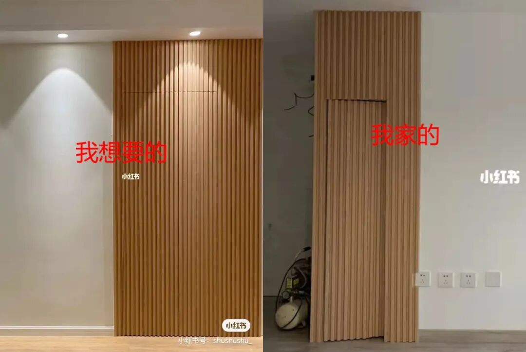 @laikesesi:看小红书上的up主自己动手装的网红格栅栏隐形门超级不错,我也自己买了材料还和工长提前沟通了隐形门的方向、荷叶的大小和方向。但最后效果就,唉,一言难尽......