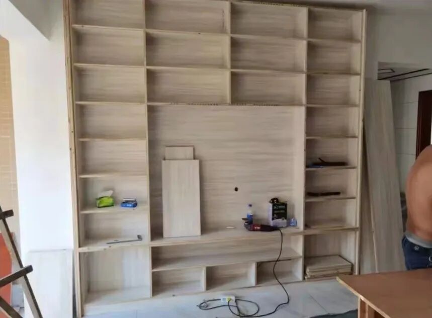 @Sailor Moon:跟师傅说书柜每格要高30cm以上,然后深度25cm,电视柜留的尺寸是144乘以81,好家伙我真的气死了,现在每格的深度是25cm,高28cm,和预想的差2公分,好多大本的书都是30cm左右的,我也不可能全部都是小本的书,而且这个劣质感满满真的一整个emo了......