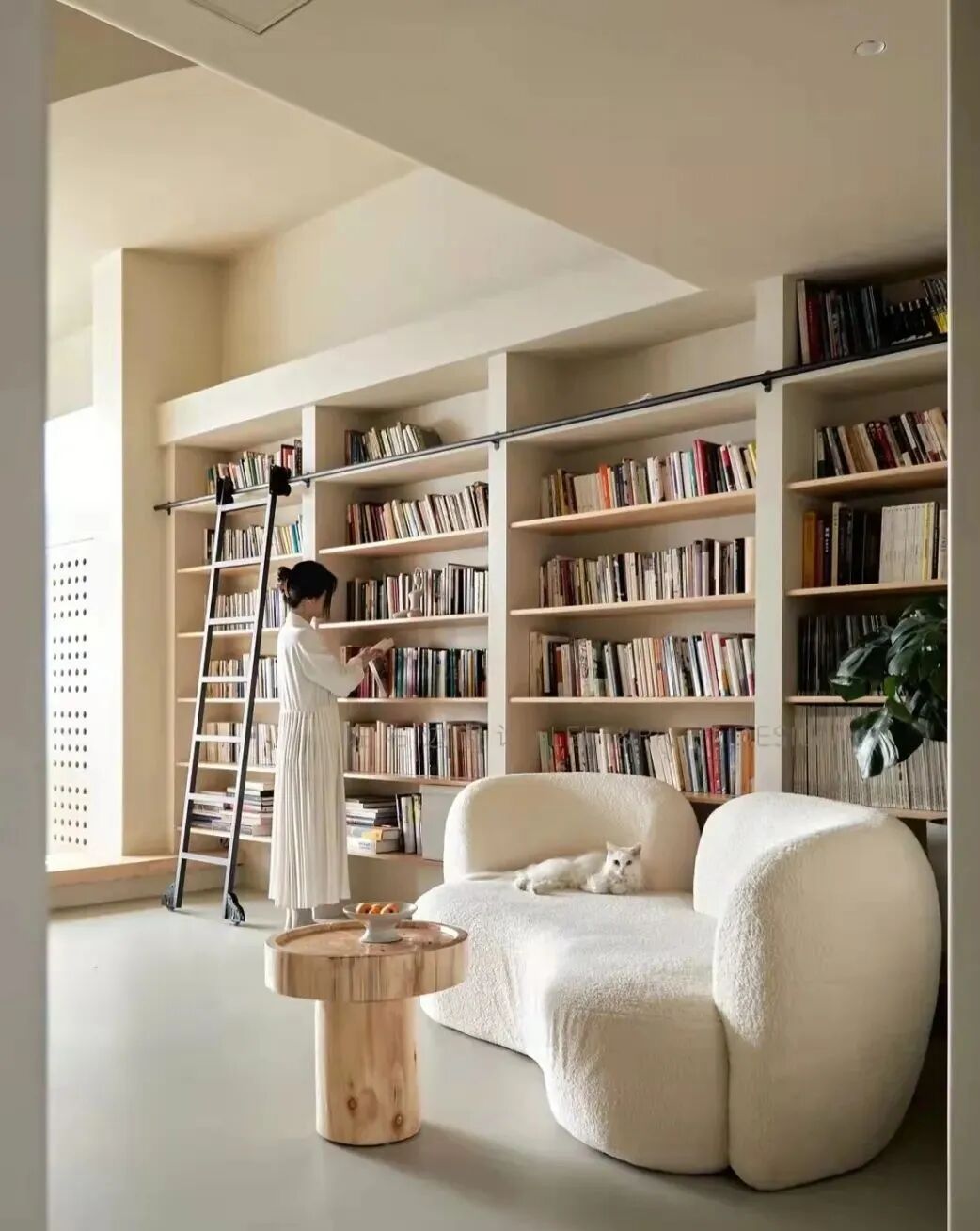 你一定也被电影电视剧里一整面墙的开放式书柜种草过。“去电视化”客厅流行起来之后,这种满墙书柜更是把家长们“望子成龙,望女成凤”的心情狠狠拿捏住了!