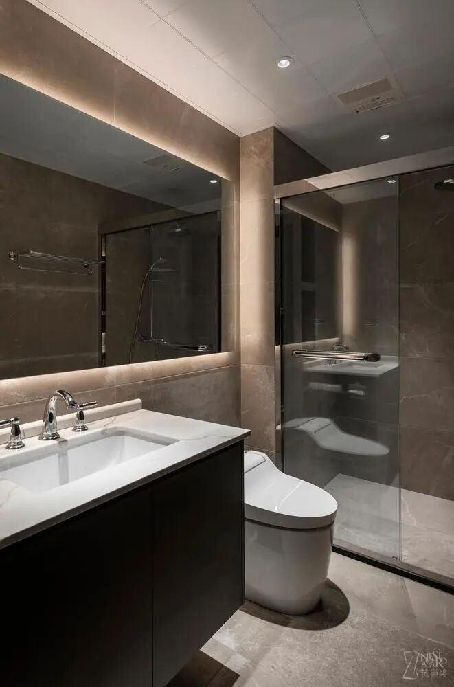 考虑到父母及女儿起夜使用,在卫生间镜柜特别设置了隐形光源,柔和的光线不至于过于刺眼。