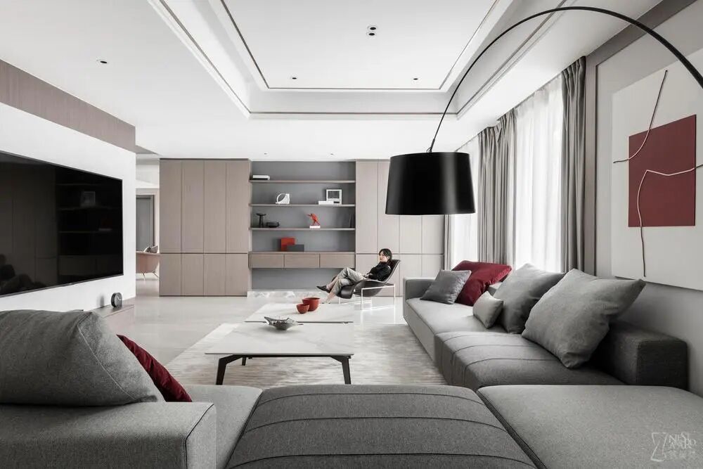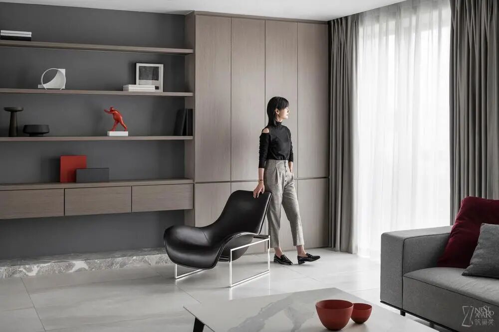 在家人最常待的空间里,我们尽可能避免运用过多色彩。不同材质、纹理的深浅灰比例得当,一轻一重,相互平衡,既增加了空间层次感又不至杂乱。