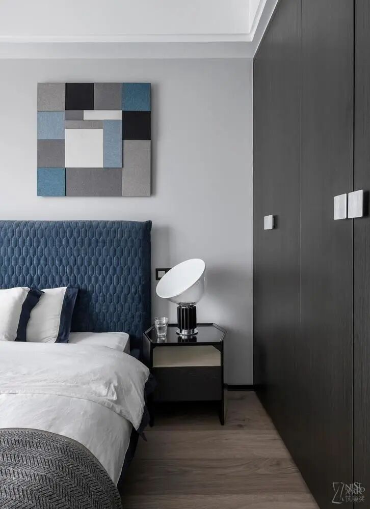 父母房则选择了雅致内敛的灰蓝与灰褐配色宁静平和,让人顿感内心安宁,空间整体散发出一种令人舒适的怀旧感。