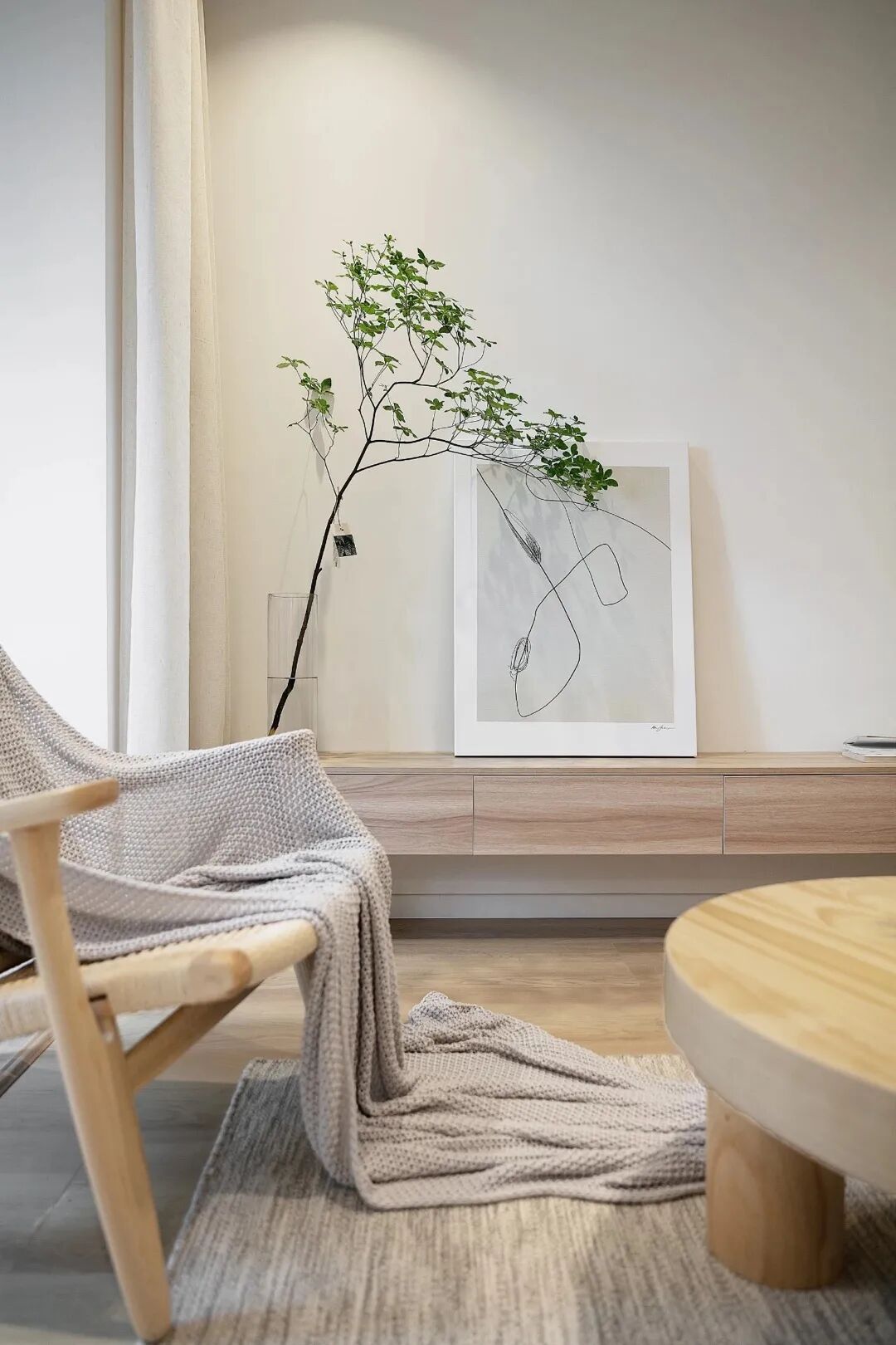 或者,直接铺个大地毯,舍去大茶几,整个空间可以增加两倍。还可以选择边几、就在手旁边,拿取物品非常方便~~