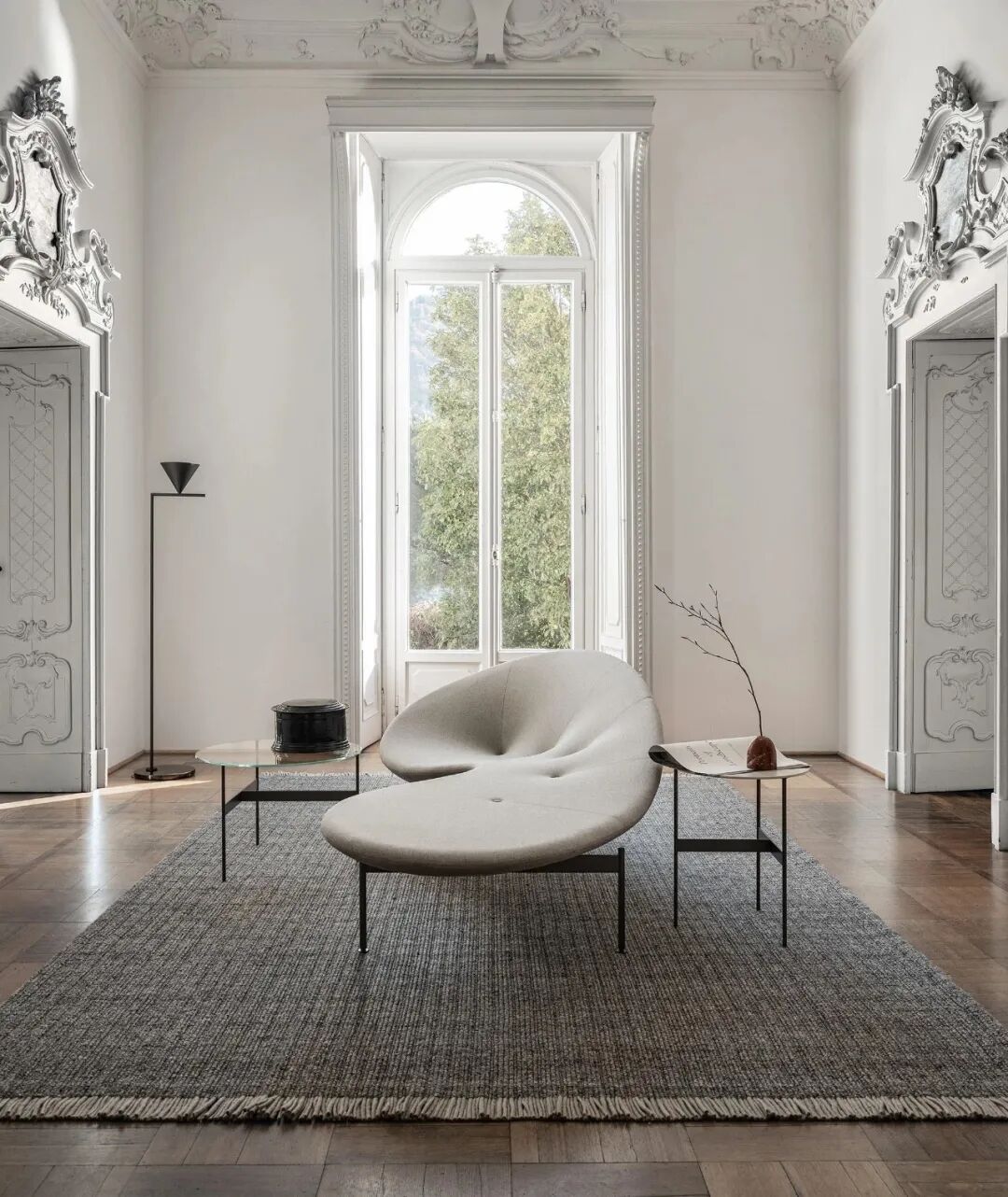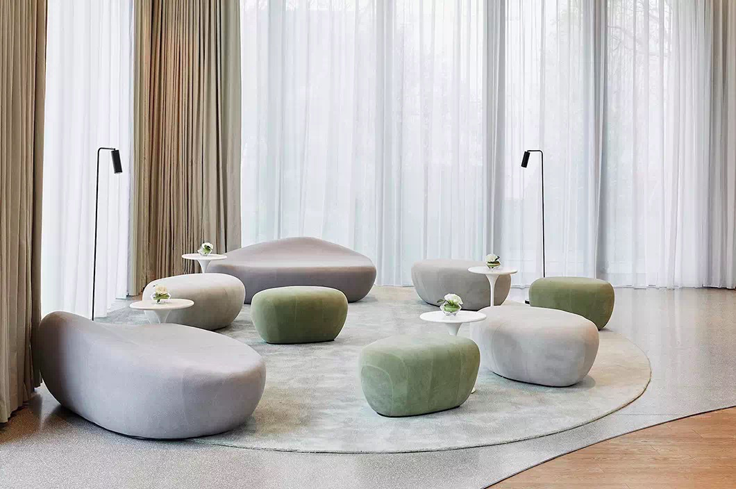 单人沙发利用形态上的优势,将区域的规则感打破,它的美来自其个性、自由的巧妙运用。