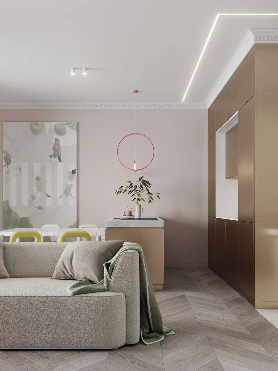 小户型的客厅可以不用执着于主灯的设计,试试线条感的空间加隐藏等灯带的方法,亮度和空间兼备!