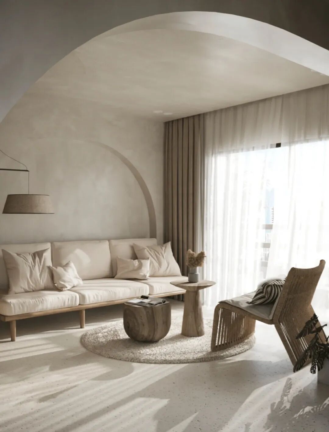 4、在细节方面尤其要注意就是收口,可分为是否包边处理,2种形式的视觉效果各不相同,包边后的效果凸显拱形门的边缘和轮廓感,而未包边显得更加通透协调。