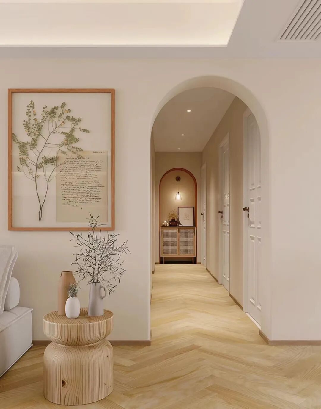 在过道中布局拱形门,这是最常见的设计。有了拱形门,可以丰富空间的形态,避免空间过于单调。拱门有很好的承重特性,所以有拱门的内墙和隔断,不会造成任何结构上的限制。