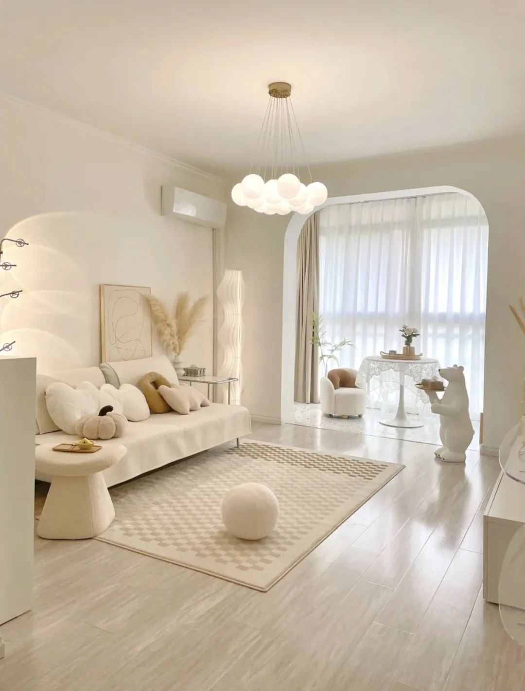 选择将阳台包进客厅或卧室,但垭口部分拆不了的,可以将门洞做成拱形,显得更柔和灵活一些。如果家里是落地窗就再好不过了,整个屋子的采光都会直线上升。