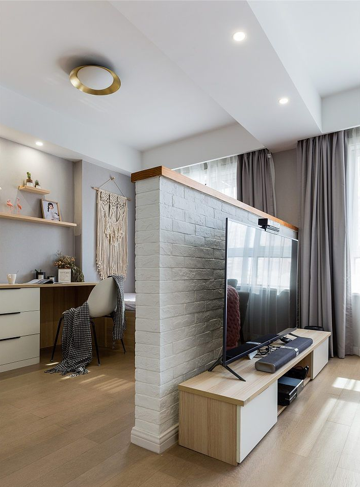 2、半隔断墙有很大的装饰作用,一定要保持整洁不要堆砌物品。它看起来是凌乱、黑暗的,那么整个房间就会显得特别拥挤。