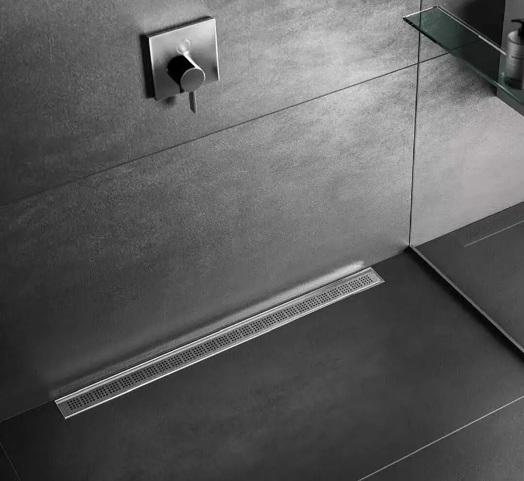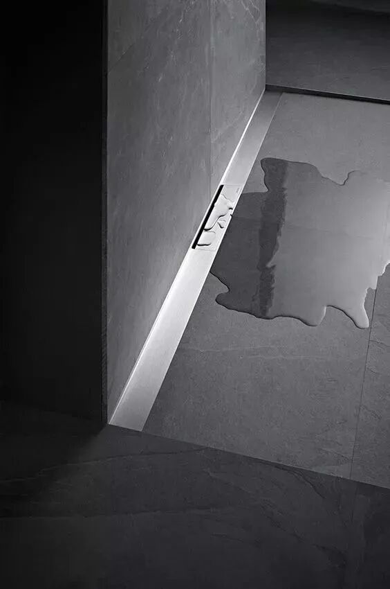除了常规的长条型,还能做成极窄型,外观上更有科技感。另外,这种类型的地漏找平坡度小,施工更方便。一般条形地漏地面向地漏处排水坡度只需要1%,而普通地漏的坡度则在1.5%-3%。