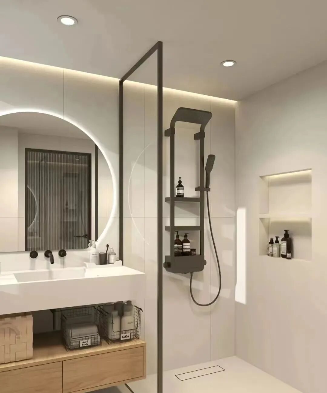 如果有地漏建议考虑T型地漏哦,考虑美观性可以与隐形地漏结合。