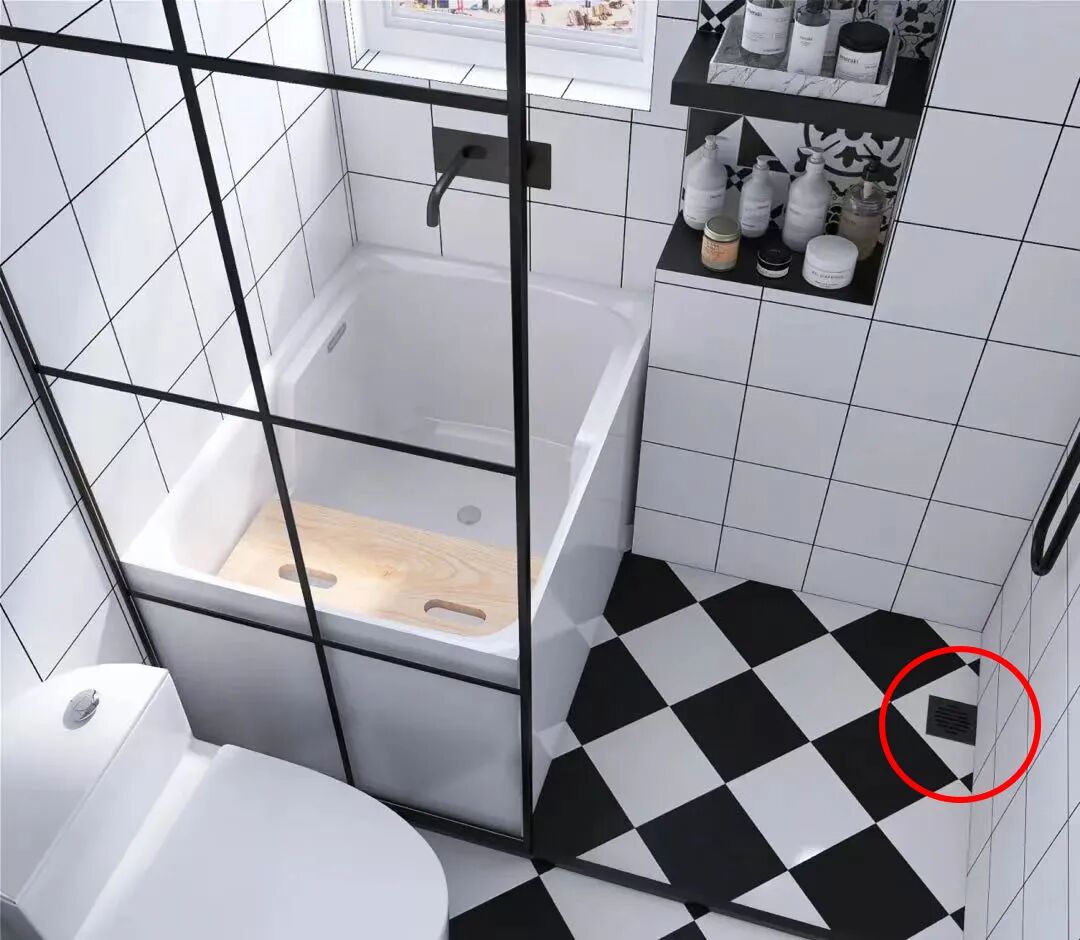 ③地漏的位置要略低于附近的地面位置,这样地面才不会积水。